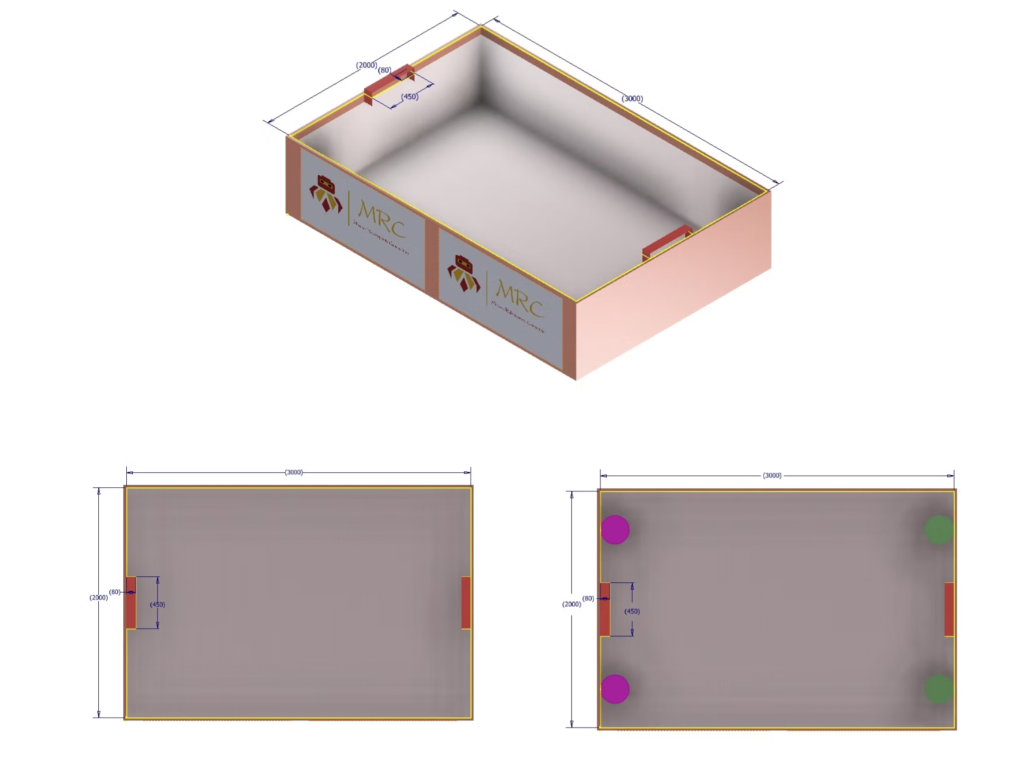- حول المحيط، يوجد إطار بسمك 2.5 سم لسلامة الروبوتات، وارتفاع الإطار هو 10 سم فوق مستوى الماء.
